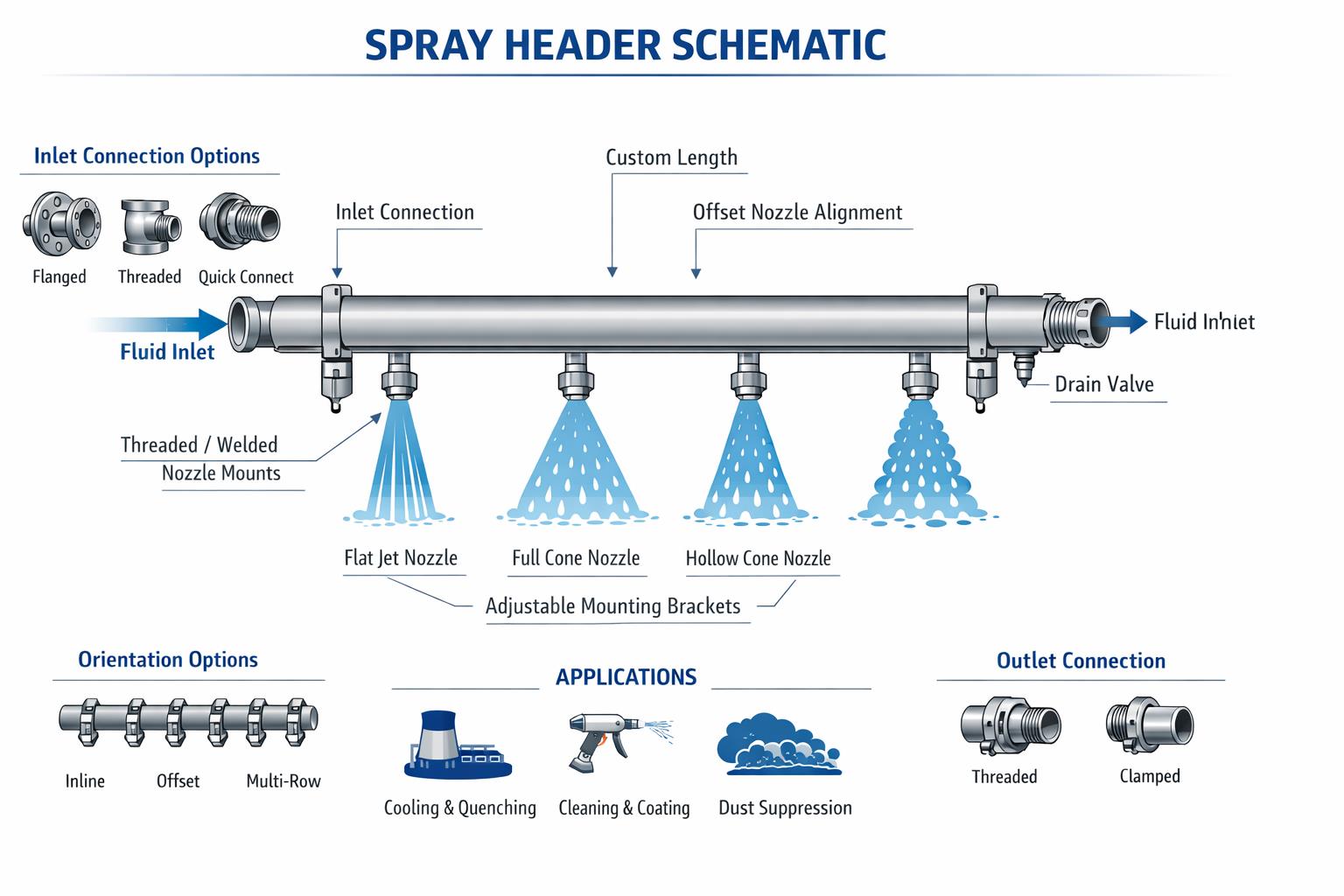 | Nozzle Spacing | Fixed spacing | Custom spacing & multi-row |